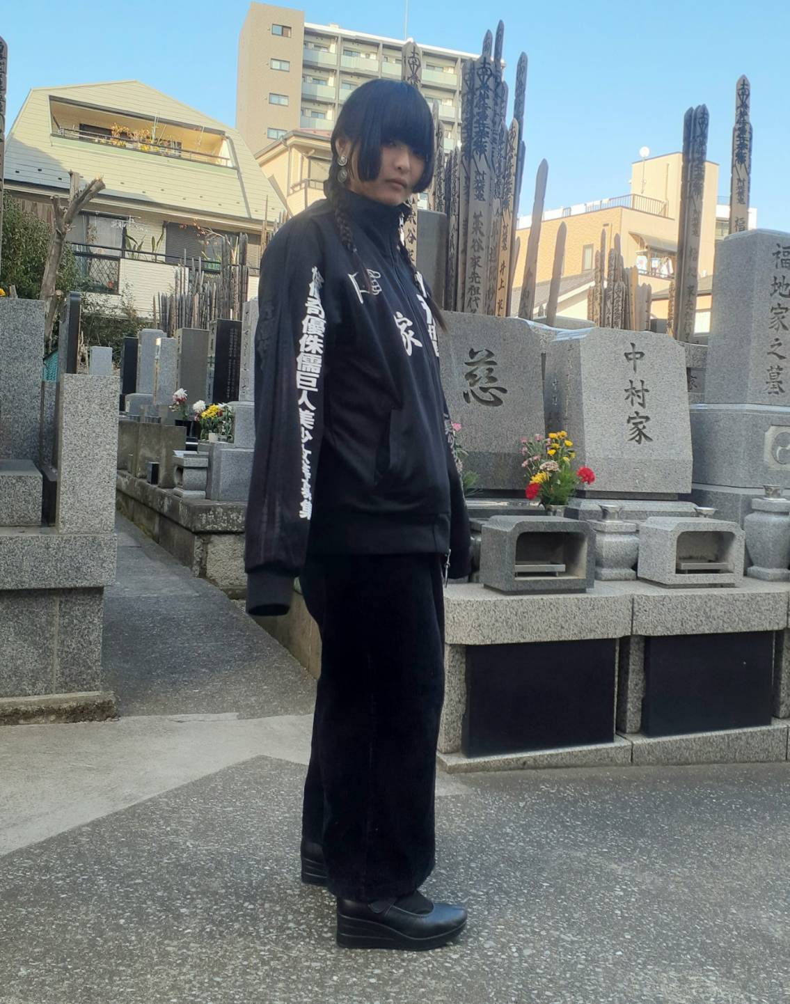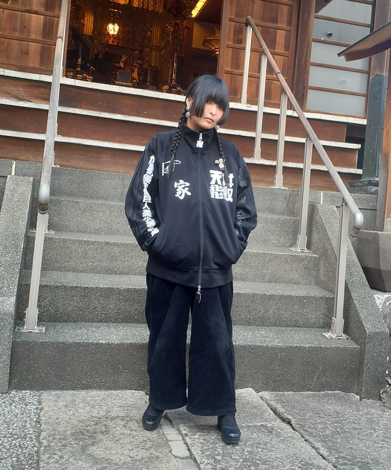 袖は白と黒それぞれ表裏でプリント、左右で互い違いになっています